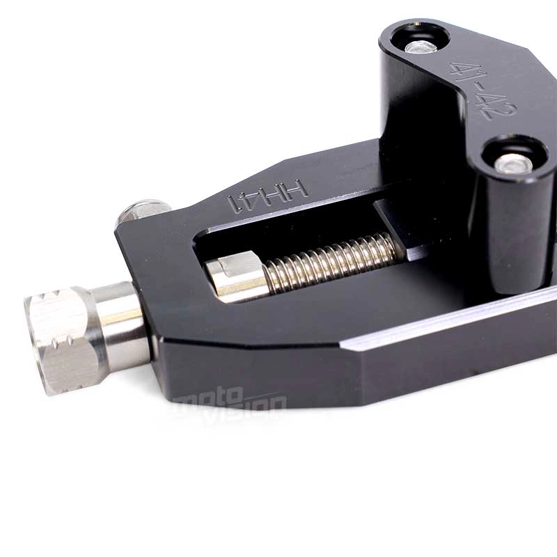 Kalyosa chain tensioners are made entirely of aluminium and are cut from the same material as the chain tensioners, making chain adjustment much simpler thanks to the ultra-fast knob system. Ideal for motorcyclists who regularly change their drive chain.
