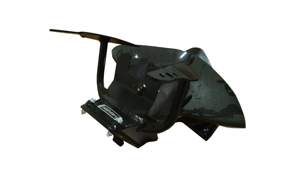 The Aluminium Fairing Bracket Racing with carbon Airduct Ducati Panigale V2 955 is an exact replica of the original frame and fairing mounting points of your bike. It allows the use of the original dashboard, but removes the optical blocks as well as the mirrors which are elements reserved for a use on road.
