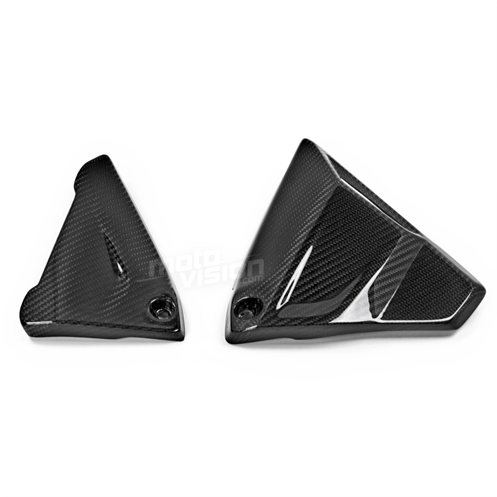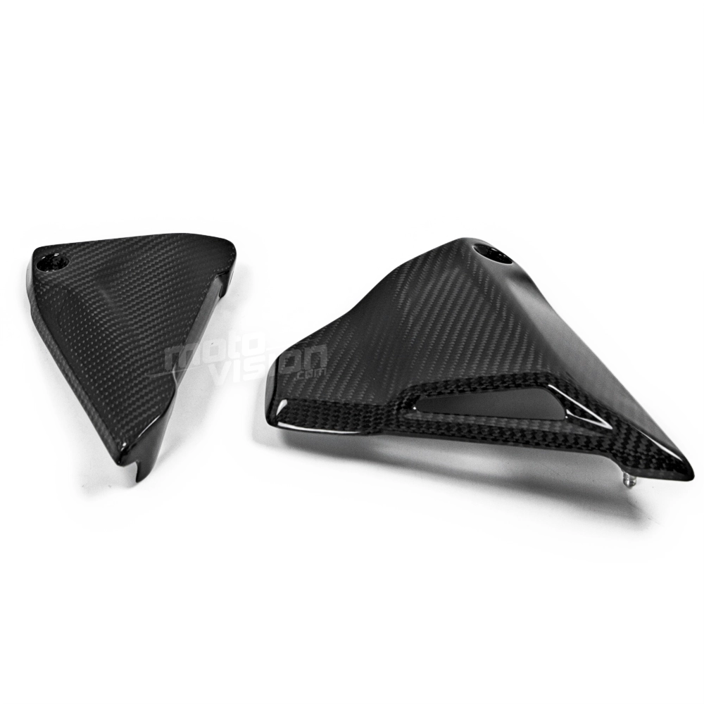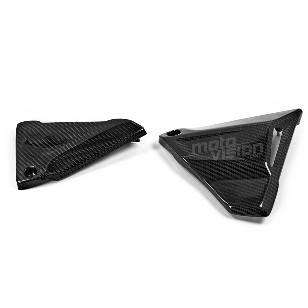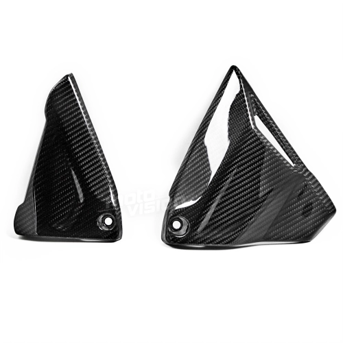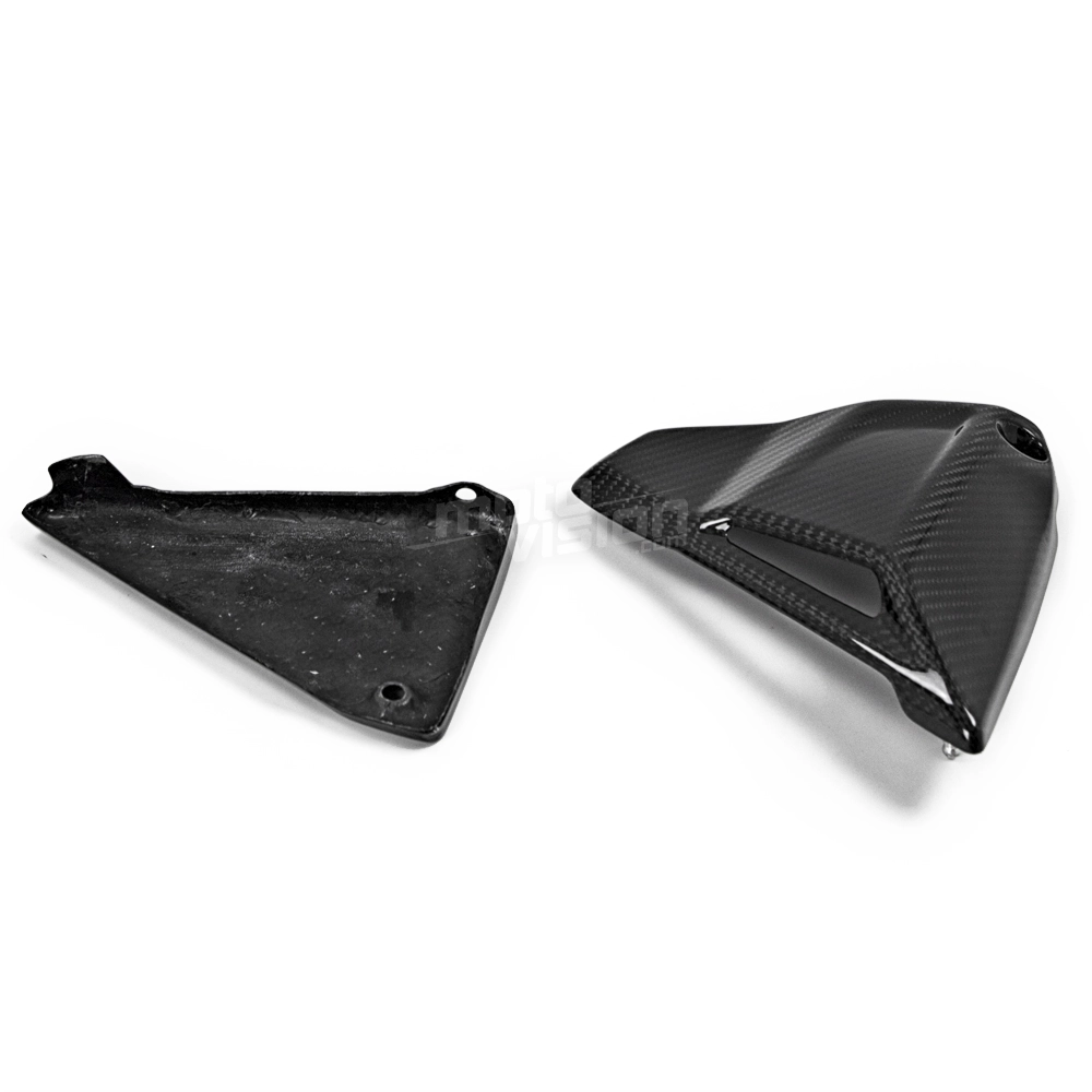 Carbon frame cover BMW R1200R/RS/GS R1250GS, delivered without screws or other fixings. The holes are already drilled on the carbon motorbike fairings. The parts are available in glossy or matt varnish.