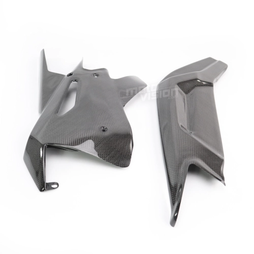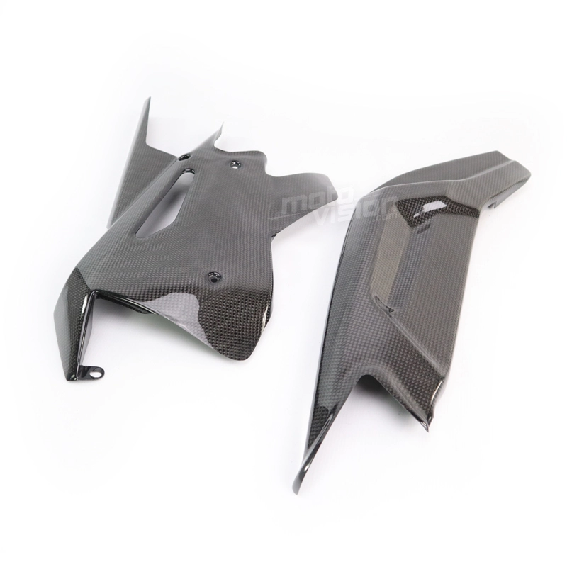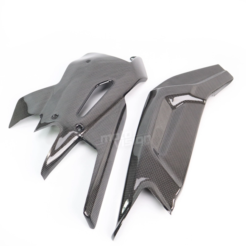 The frame and swingarm protections in real carbon give in your motorcycle a protection against gravel if dropped.