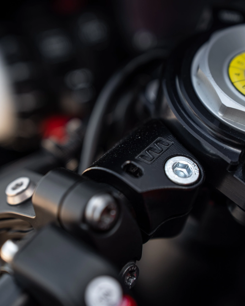 Womet-tech ewc clip ons for the Bmw S1000RR 2019 are indeed different by design. They maintain correct bar position while integrating seemlessly with the OEM triple clamp, providing adjustability, a rotational lock, and high crash durability. Additionally, they are hinged for installation and removal without removal of the upper triple clamp.