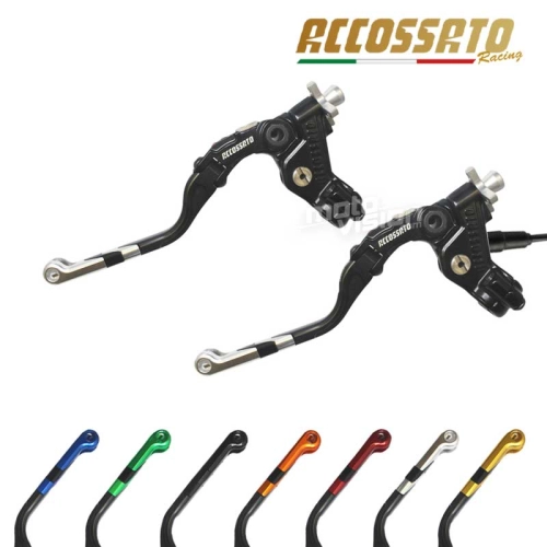 The Accossato Flip Up motorbike levers are available in a long modular version with 24, 29, 32 or 34mm centres and you can choose the colour of your lever from 7 different options.