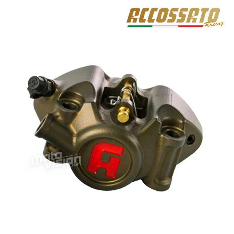 The Accossato one-piece radial front calipers are sold individually (left or right). They are delivered without pads or dust covers. Moto 3 CNC aluminium calipers are designed for 60mm centres, with 2 titanium pistons (34mm) and a 20.5mm offest.