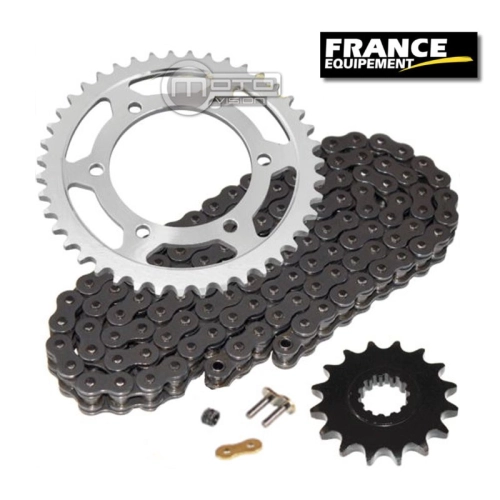 The France Equipement motorbike chain kit for Ducati 999 2002-2004 15X36 consists of a super reinforced RK525FEX chain with a rx'ring seal and a aluminium sprocket. The aluminium ensures maximum lightness, while the steel gives the product a long service life.