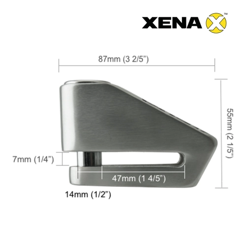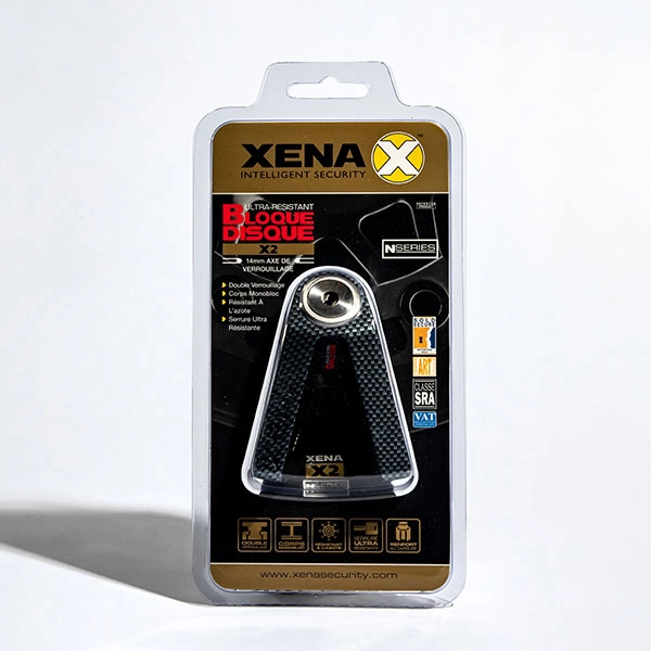 Ensure the safety of your motorbike or scooter with the XENA X2 SRA disc lock in stainless steel and with a 14mm double locking pin reinforced with carbide. The XENA X2 SRA comes with 1 disc lock, 3 keys, 1 metal plate with key numbers and a user manual.