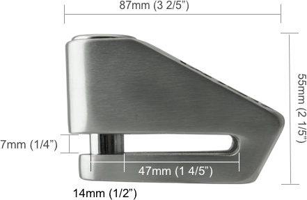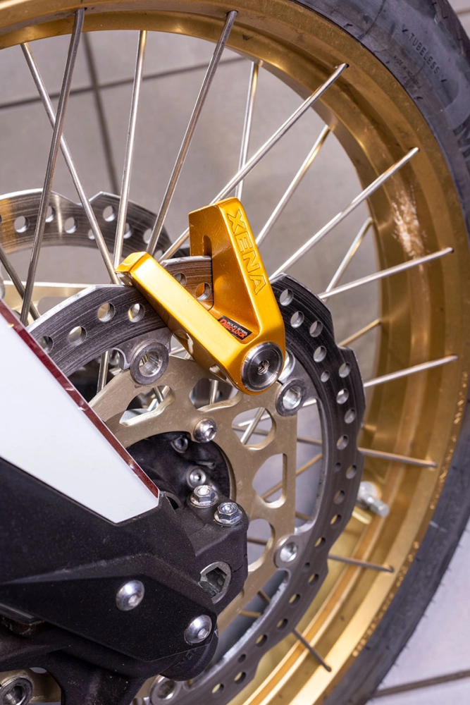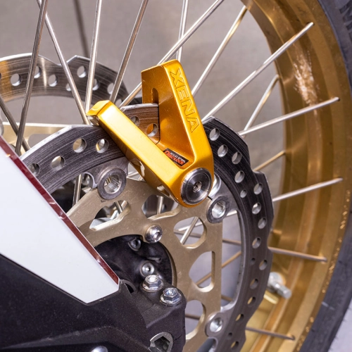 The XENA X2 SRA disc lock is made of stainless steel and has a 14mm double locking pin reinforced with carbide. The XENA X2 SRA comes with 1 disc lock, 3 keys, 1 metal plate with key numbers and a user manual.