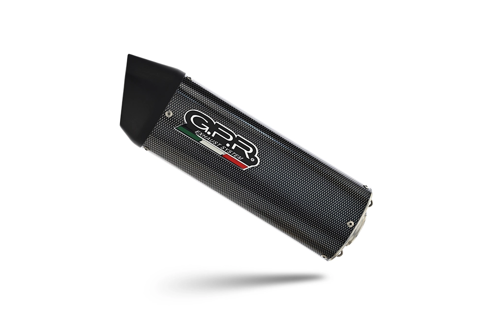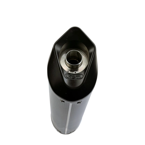 GPR's Furore Poppy silencer has a carbon look, stainless body and has been developed with a production process that produces zero impact to the environment. It has an oval shape with a diameter of 120MM, with avional bottoms produced by CNC machining.This kit includes the specific lnik pipe or half-manifold with specific appropriate brackets and accessories. This allows for installation without any structural modifications.This is an original GPR product, developed after GPR's experience in the World Championship. It offers an innovative design, improved performance, weight savings and a full-bodied sound.Weight : 1,65 Kg