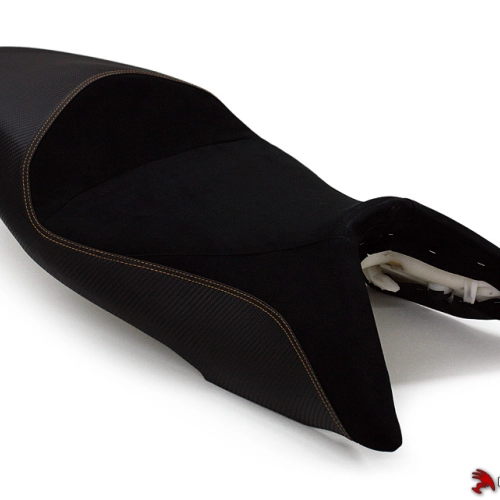 High quality Luimoto Seat cover Aprilia Shiver SL 750 06-09 made in Canada. The brand designs products with a superb finish: detailed embroidery, navy vinyl, carbon style fabric or high quality suede leather... The design and colours are customised to match the look of your bike.