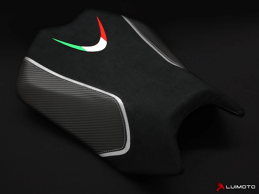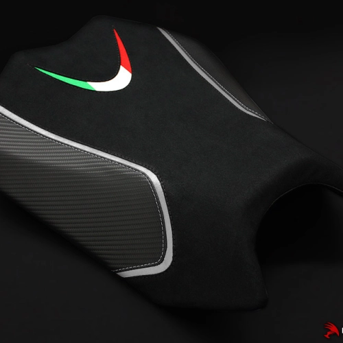 High quality Luimoto Seat cover Aprilia Tuono 11-14 made in Canada. The brand designs products with a superb finish: detailed embroidery, navy vinyl, carbon style fabric or high quality suede leather... The design and colours are customised to match the look of your bike.