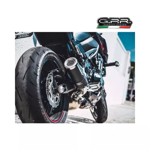 GPR developed the M3 Black Titanium after the victories in the Moto3 World Championship. It has a removable racing grill, and a black titanium body with CNC-machined bottoms. Its round shape has a diameter of 100MM.This kit includes the specific lnik pipe or half-manifold with specific appropriate brackets and accessories. This allows for installation without any structural modifications.This is an original GPR product, developed after GPR's experience in the World Championship. It offers an innovative design, improved performance, weight savings and a full-bodied sound.Weight : 1,2 Kg