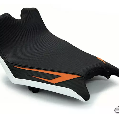 High quality Luimoto Seat cover KTM RC8 08-15 made in Canada. The brand designs products with a superb finish: detailed embroidery, navy vinyl, carbon style fabric or high quality suede leather... The design and colours are customised to match the look of your bike.