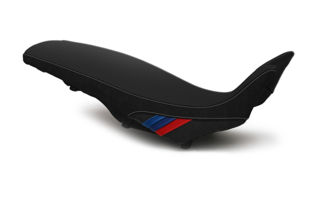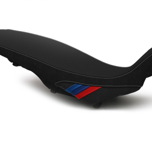 High quality Luimoto Seat cover BMW F650GS / F800GS 08- made in Canada. The brand designs products with a superb finish: detailed embroidery, navy vinyl, carbon style fabric or high quality suede leather... The design and colours are customised to match the look of your bike.
