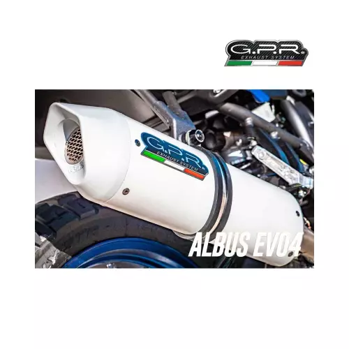 GPR's ALBUS silencer series has an aluminum body and CNC-machined Avional caps. The exhaust has a ceramic treatment, that can withstand high temperatures. It has an elliptical shape with measurements of 90 x 120 MM.ALBUS SILENCER This kit includes the fitting (link pipe) and its specific catalyst with the appropriate brackets and accessories. This allows for installation without any structural modifications.This is an original GPR product, developed after GPR's experience in the World Championship. It offers an innovative design, improved performance, weight savings and a full-bodied sound.Weight : 1,5 Kg