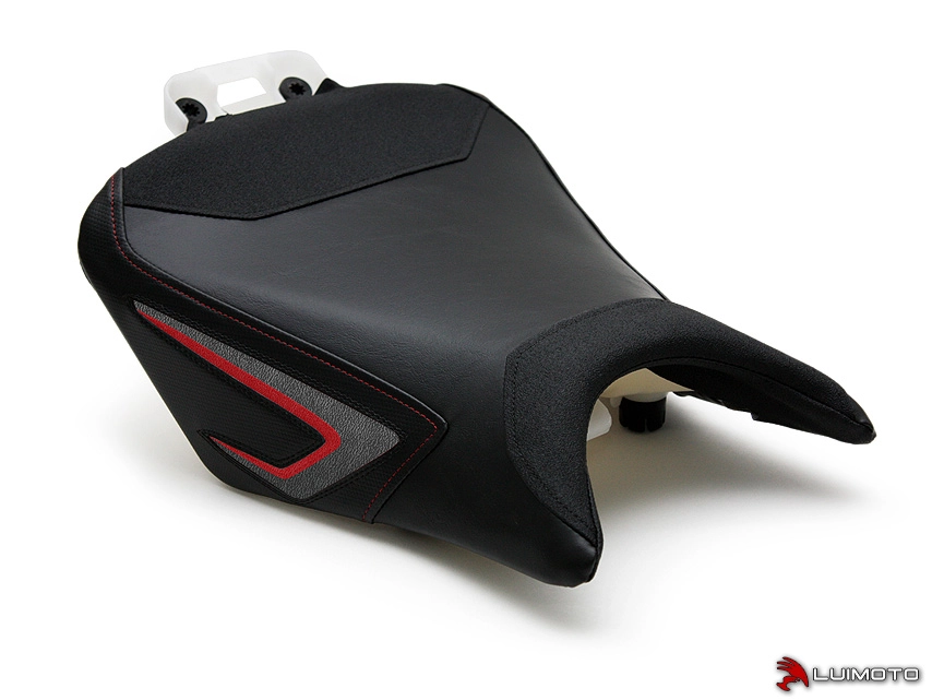 High quality Luimoto Seat cover Honda CBR 500R 13- made in Canada. The brand designs products with a superb finish: detailed embroidery, navy vinyl, carbon style fabric or high quality suede leather... The design and colours are customised to match the look of your bike.