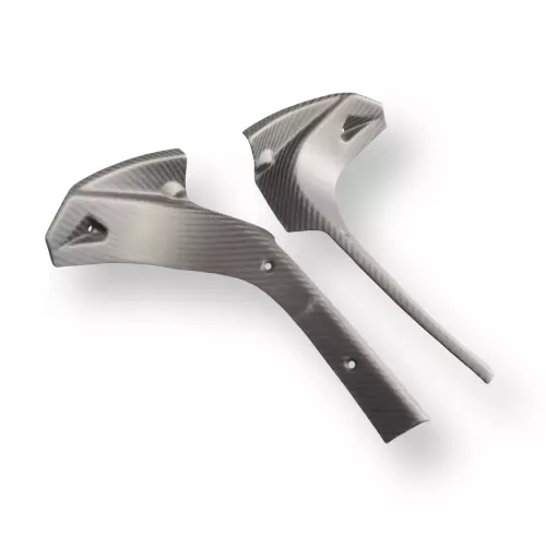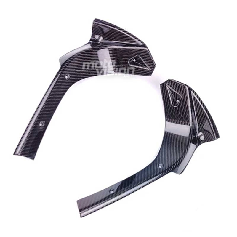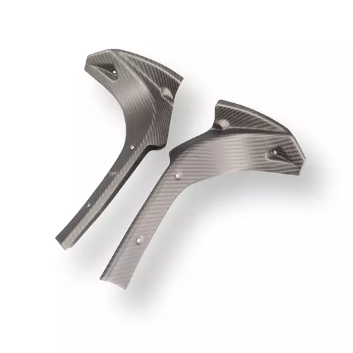 Dashbord side panels Carbone Aprilia RS660 2020-, delivered without screws or other fixings. The holes are already drilled on the carbon motorbike fairings. The parts are available in glossy or matt varnish.