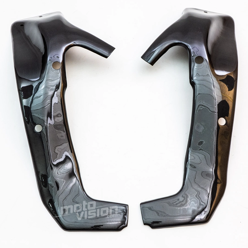 Motorcycle protection with an outer layer made of genuine gloss twill carbon (only available in this finish). Supplied without screws or any other mounting hardware.