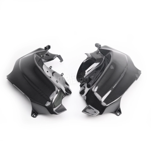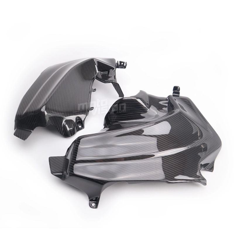 Carbon glossy Side Fairings Ducati Panigale V2 959, delivered without screws or other fixings. The holes are already drilled on the carbon motorbike fairings. The parts are available in glossy or matt varnish.