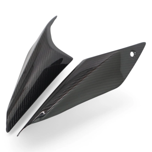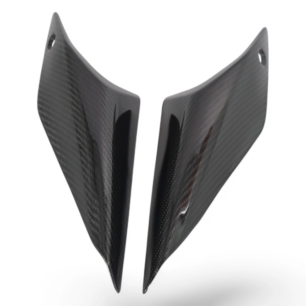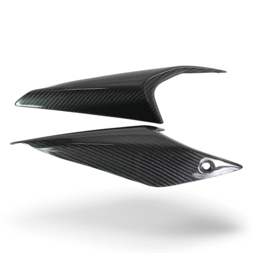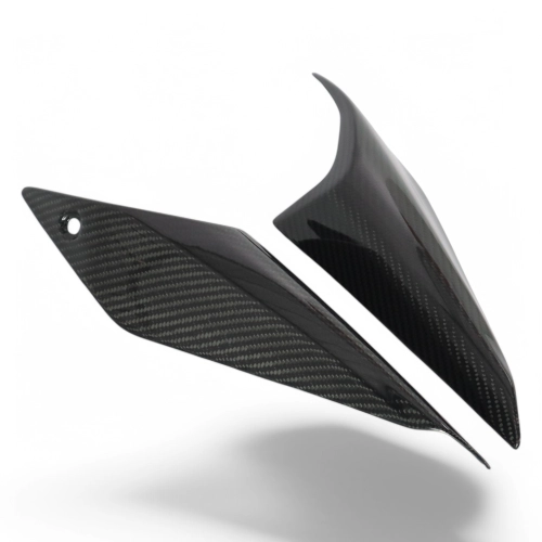 Rear seat side panels carbon Ducati Monster 937/950 Stealth 2021-, delivered without screws or other fixings. The holes are already drilled on the carbon motorbike fairings. The parts are available in glossy or matt varnish.