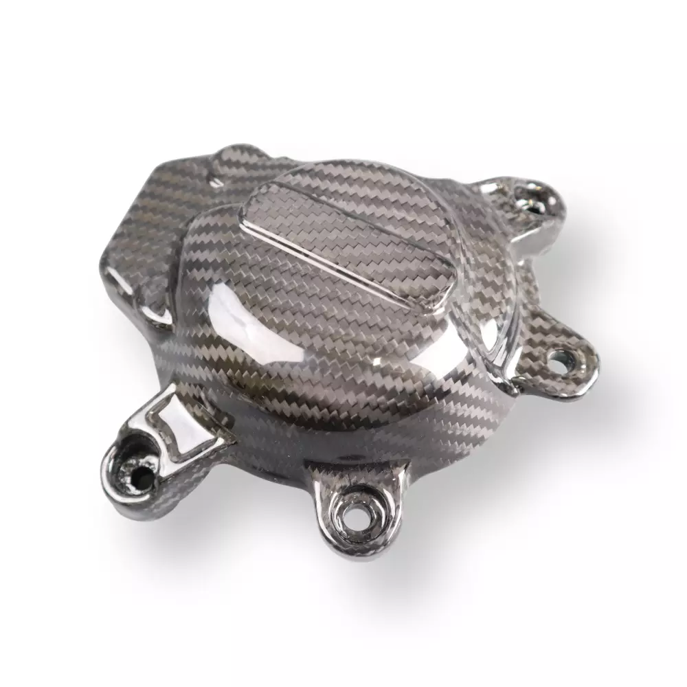 Carbon Fiber Engine Cover Honda CB650R/CBR650R 2019-2021, delivered without screws or other fixings. The holes are already drilled on the carbon motorbike fairings. The parts are available in glossy or matt varnish.