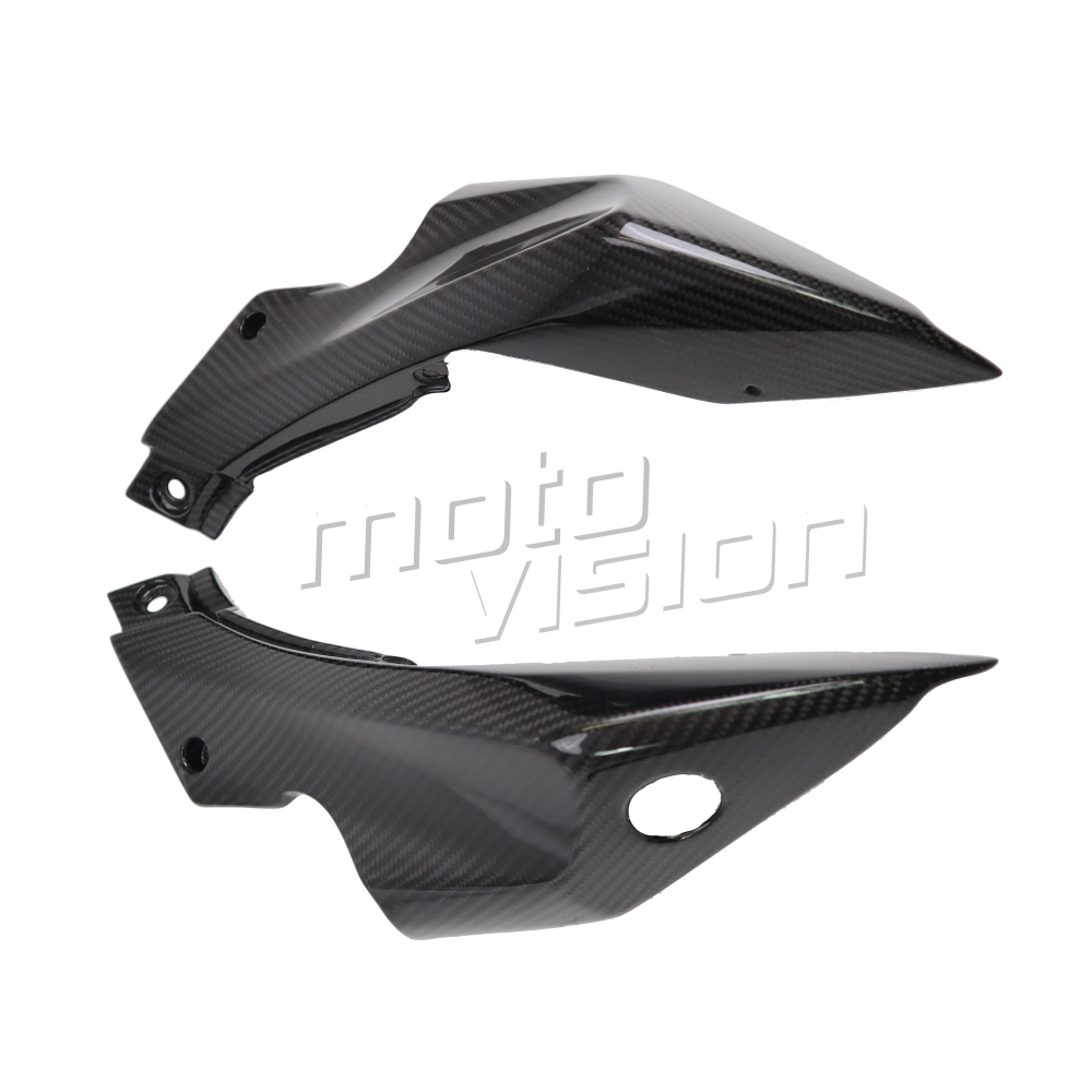 Carbon Fiber Seat side panels Kawasaki Z-H2 2020-, delivered without screws or other fixings. The holes are already drilled on the carbon motorbike fairings. The parts are available in glossy or matt varnish.