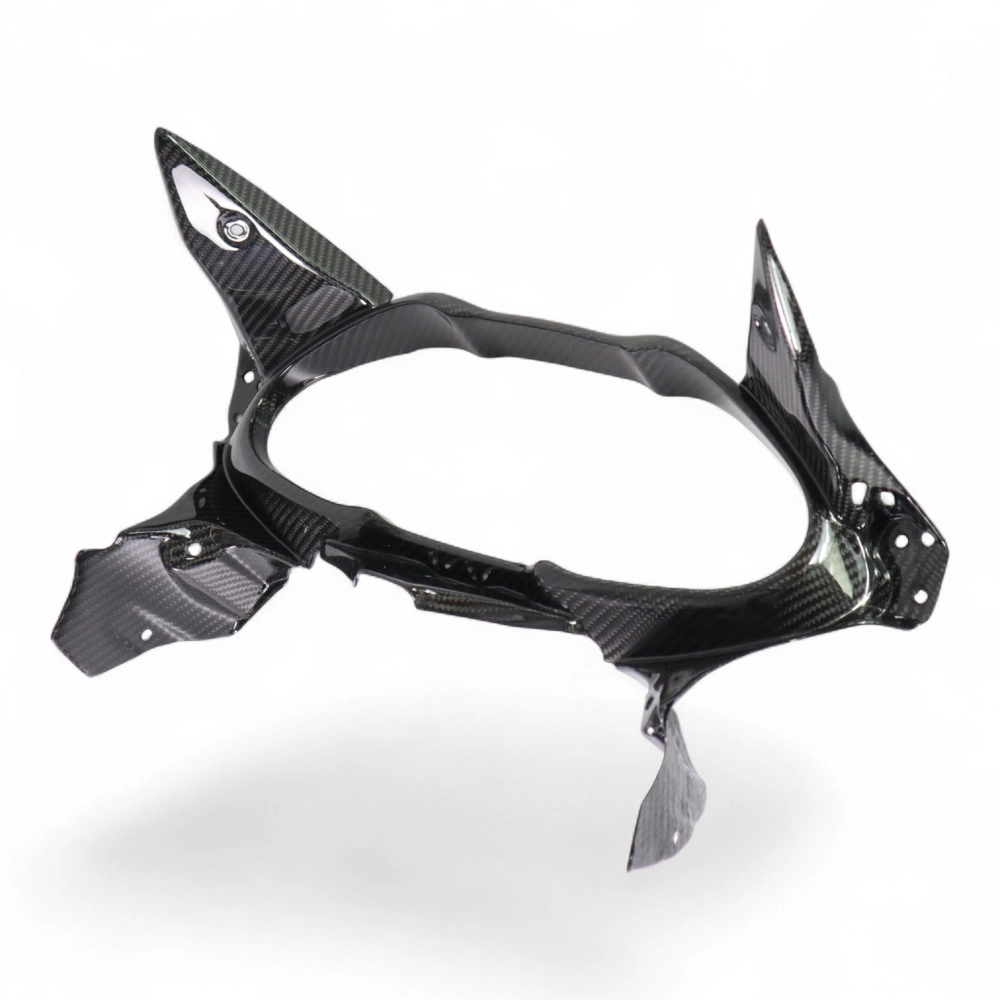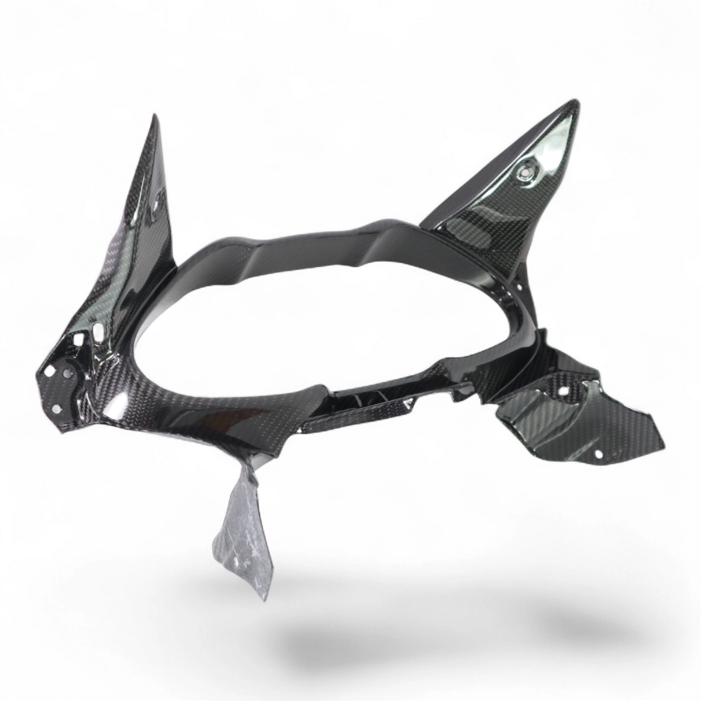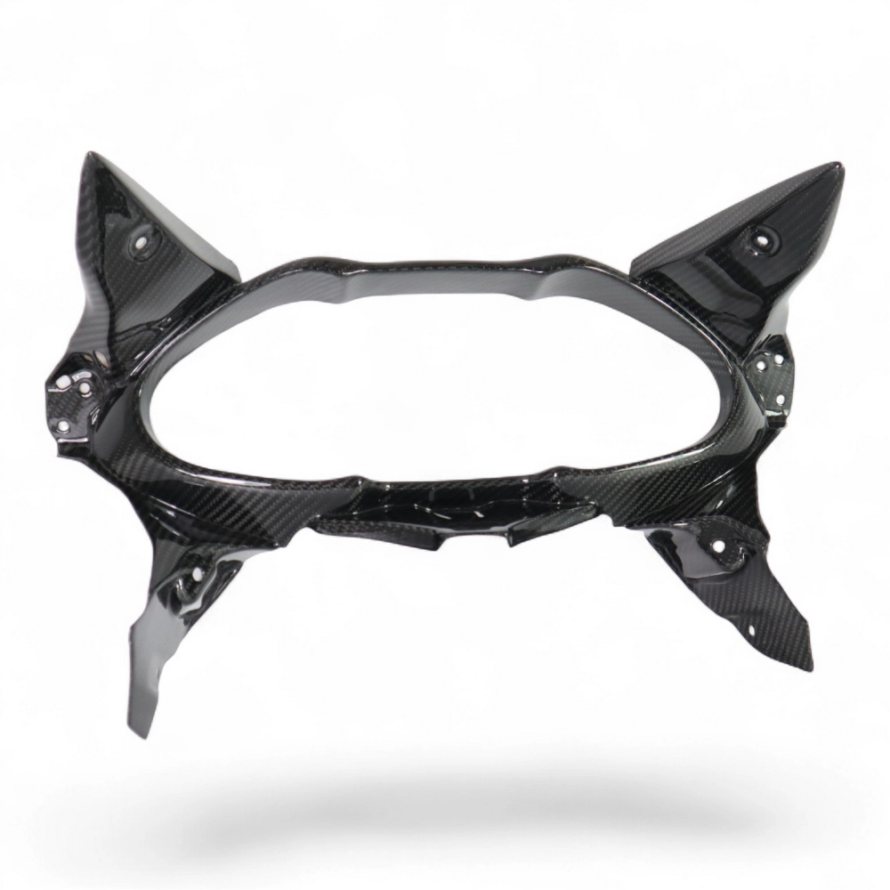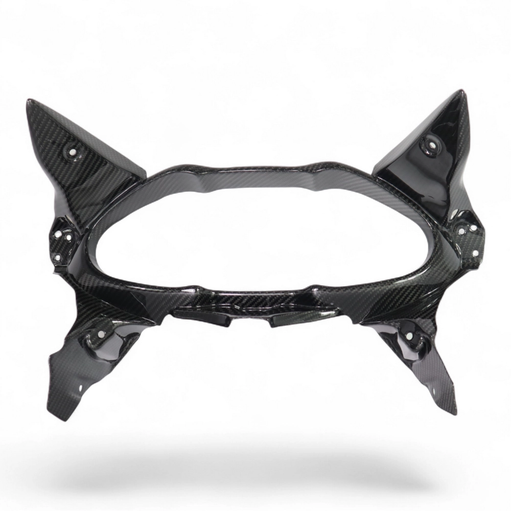 Carbon Fiber Instrument surround Suzuki Hayabusa 2021-, delivered without screws or other fixings. The holes are already drilled on the carbon motorbike fairings. The parts are available in glossy or matt varnish.