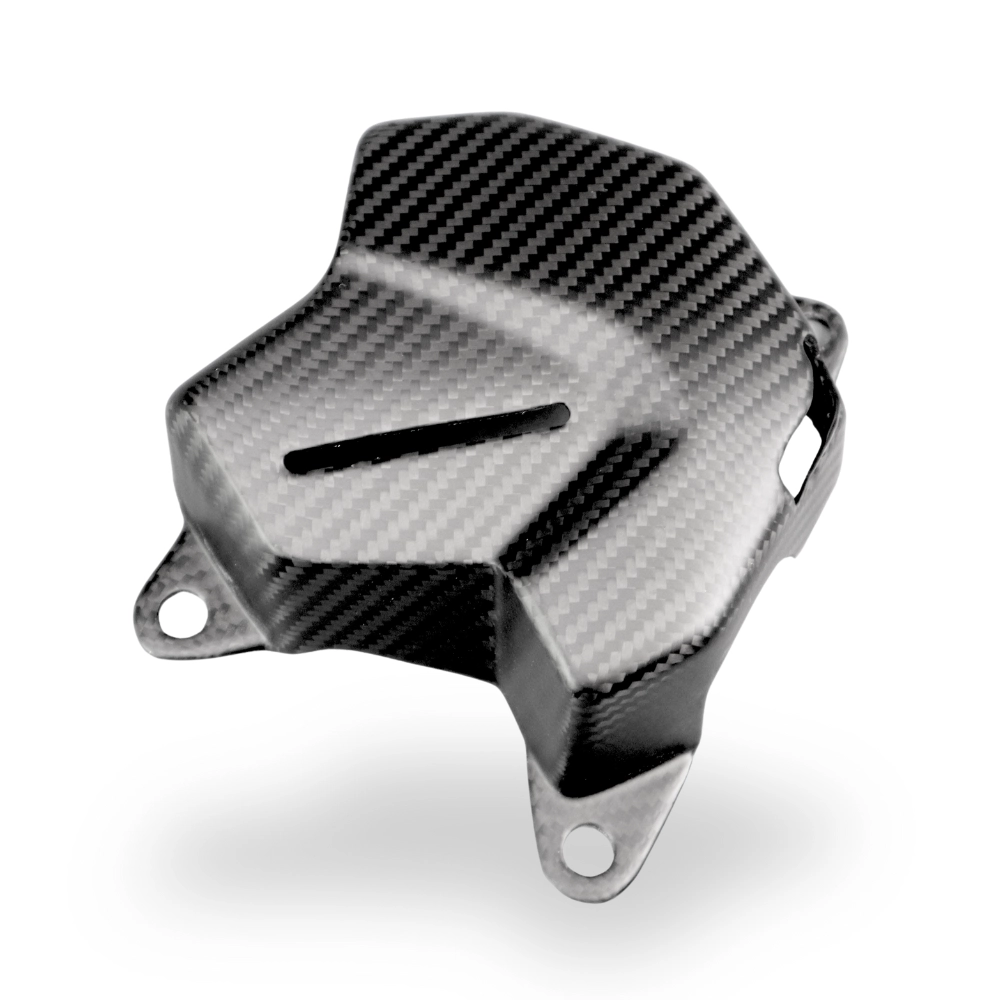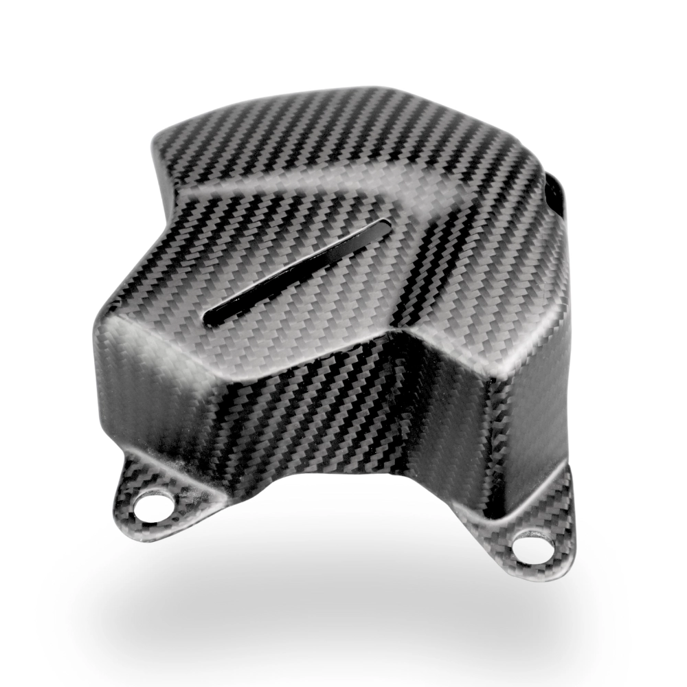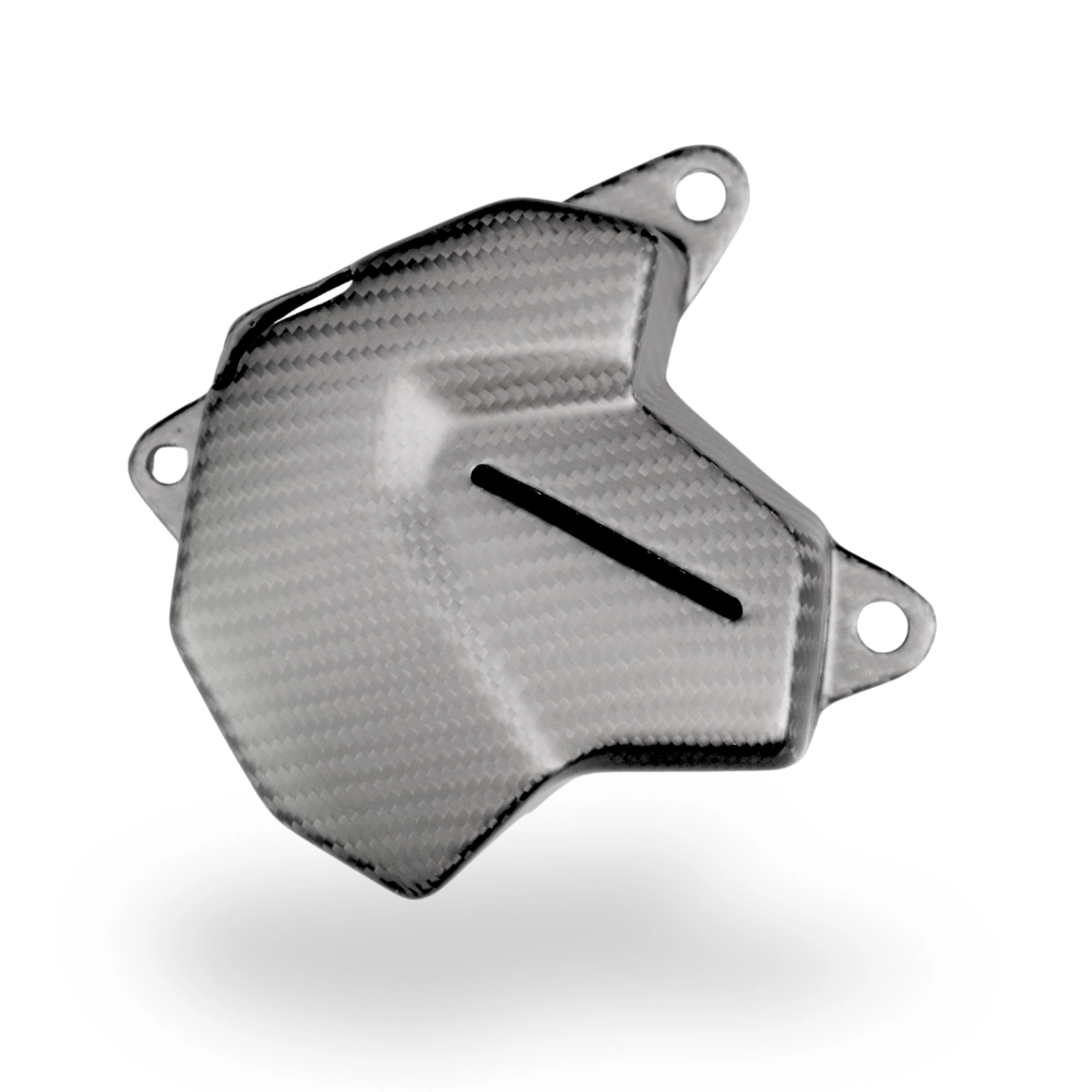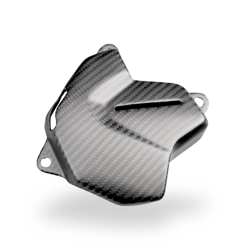 Carbon left engine cover Triumph Trident 660 2021-, delivered without screws or other fixings. The holes are already drilled on the carbon motorbike fairings. The parts are available in glossy or matt varnish.