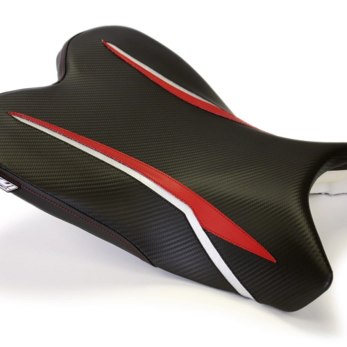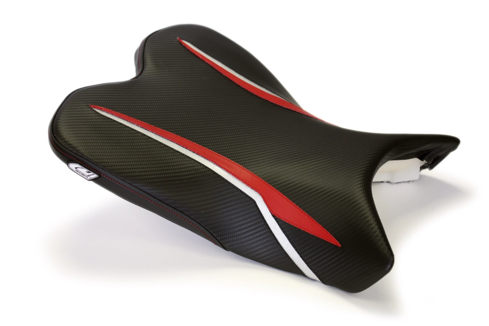 High quality Luimoto Seat cover Yamaha R1 09-14 made in Canada. The brand designs products with a superb finish: detailed embroidery, navy vinyl, carbon style fabric or high quality suede leather... The design and colours are customised to match the look of your bike.