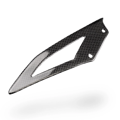 Carbon Chain Guard Triumph Daytona 675 2006-2012, delivered without screws or other fixings. The holes are already drilled on the carbon motorbike fairings. The parts are available in glossy or matt varnish.