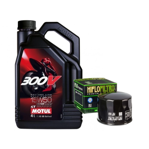 Motul 300V 15W50 4L + Premium Oil Filter HIFLO FILTRO.