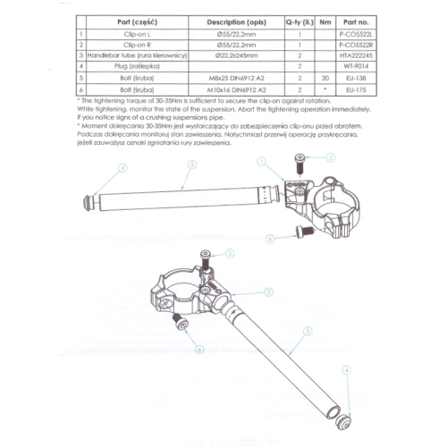 Clip on right Womet Tech® half handlebars diameter 55mm BMW S1000RR 2019-.