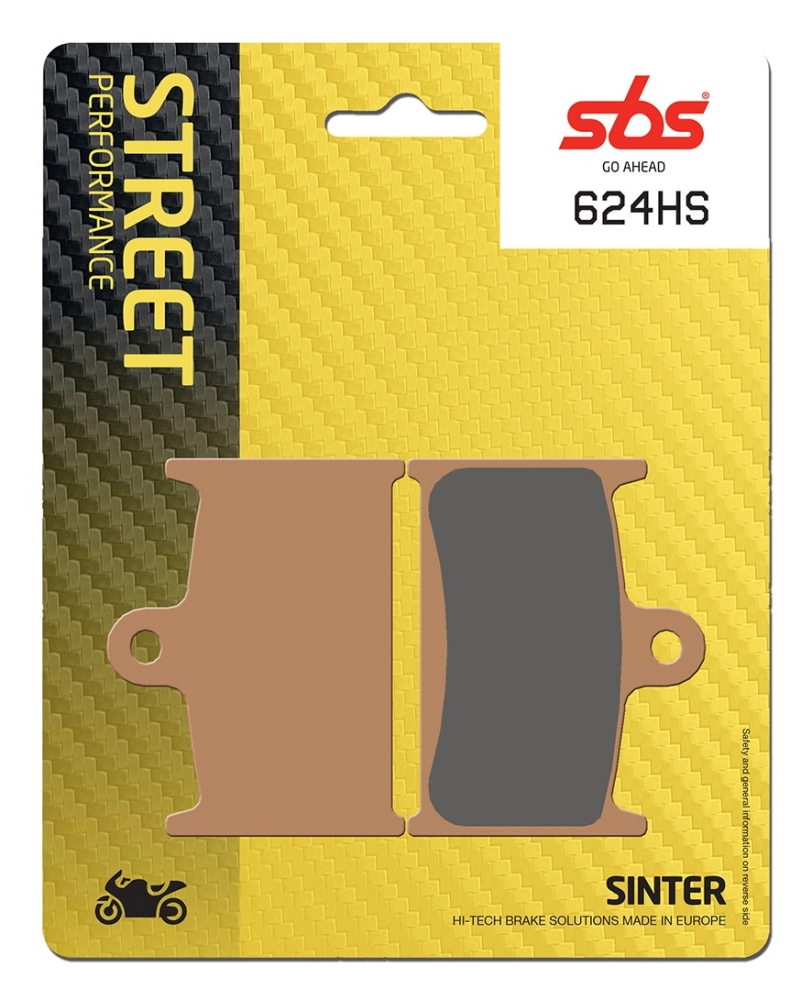 Set of brake pads SBS 624 (HS) for motorbikes with original sintered front pads. Part of the Street Sinter range - Front sintered metal.