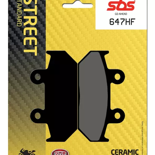 Set of brake pads SBS 647HF from the Street Organique range, ideal for replacing your original pads to provide stable braking, a high level of comfort, long life and disc protection in wet and dry conditions for motorbikes and scooters.