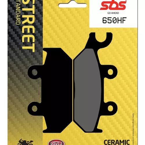 Set of brake pads SBS 650HF from the Street Organique range, ideal for replacing your original pads to provide stable braking, a high level of comfort, long life and disc protection in wet and dry conditions for motorbikes and scooters.