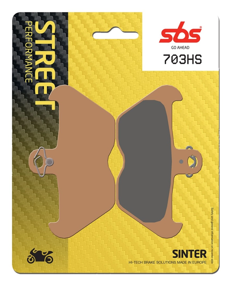 Set of brake pads SBS 703 (HS) for motorbikes with original sintered front pads. Part of the Street Sinter range - Front sintered metal.