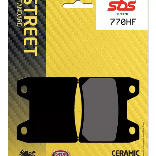 Set of brake pads SBS 770HF from the Street Organique range, ideal for replacing your original pads to provide stable braking, a high level of comfort, long life and disc protection in wet and dry conditions for motorbikes and scooters.