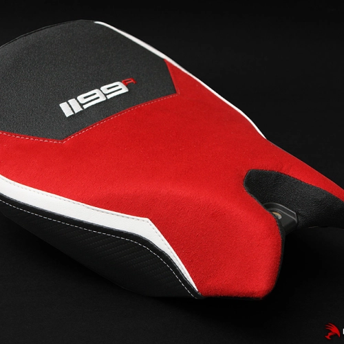 High quality Luimoto Seat cover "Confort" Ducati Panigale 1199 11-15 made in Canada. The brand designs products with a superb finish: detailed embroidery, navy vinyl, carbon style fabric or high quality suede leather... The design and colours are customised to match the look of your bike.