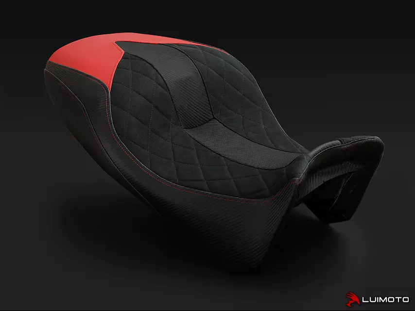 High quality Luimoto Seat cover Ducati Diavel15- made in Canada. The brand designs products with a superb finish: detailed embroidery, navy vinyl, carbon style fabric or high quality suede leather... The design and colours are customised to match the look of your bike.
