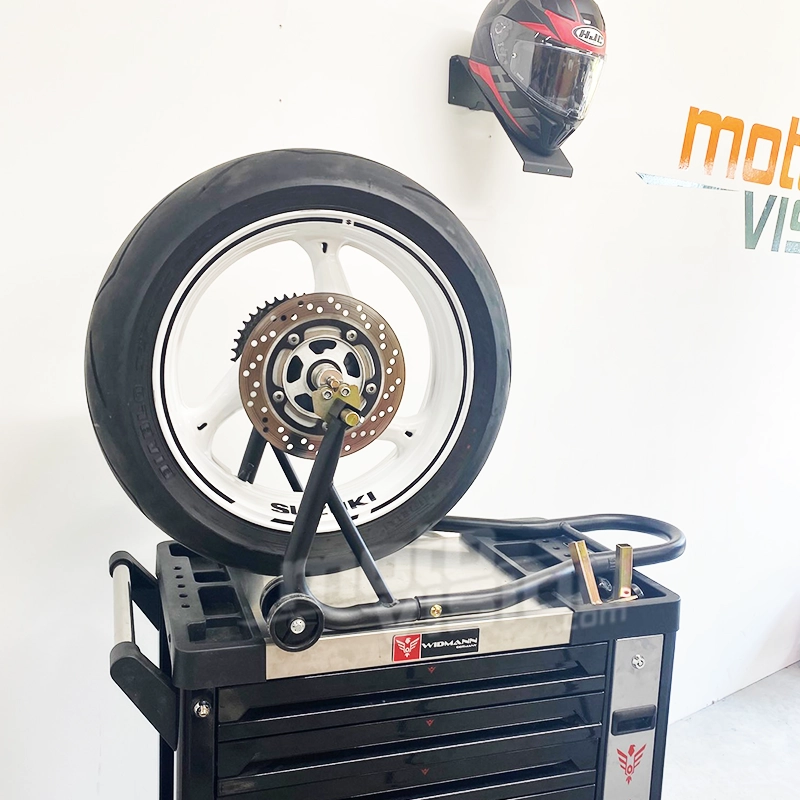 This kit is designed for balancing motorbike and bicycle tyres and is very easy to use. It fits directly onto Moto Vision universal rear stands and most universal motorbike lifts, instead of skate or diabolo kits. So you can balance your wheels very easily in your garage, or when you're out on the track, without having to worry about a complete balancer.