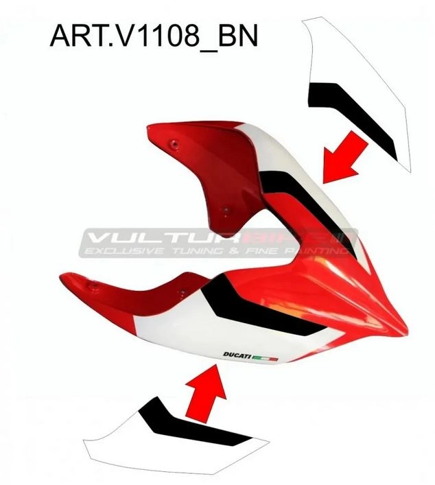 Personalise your motorbike with Black-white tail stickers - Ducati Panigale / Streetfighter V4 / V4S / V2 stickers. Vulturbike decorative stickers are cut from UV-stabilised tinted vinyl.