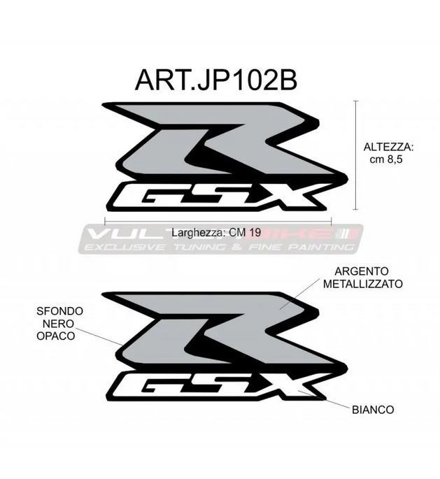 Personalise your motorbike with Adesivi per carene laterali - Suzuki GSX R 1000 stickers. Vulturbike decorative stickers are cut from UV-stabilised tinted vinyl.