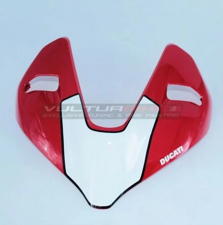 Personalise your motorbike with the White windshield sticker with black border - Ducati Streetfighter V2 / V4 / V4S. Vulturbike decorative stickers are cut from UV-stabilised tinted vinyl.