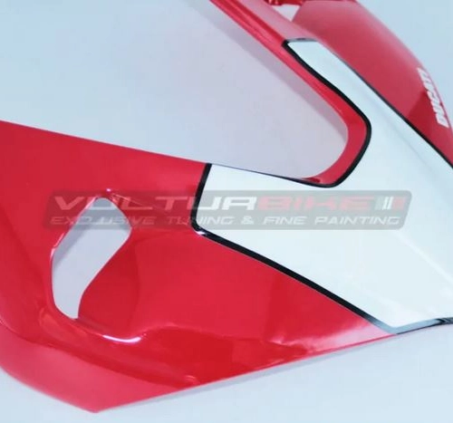 Personalise your motorbike with White windshield sticker with black border - Ducati Streetfighter V2 / V4 / V4S stickers. Vulturbike decorative stickers are cut from UV-stabilised tinted vinyl.