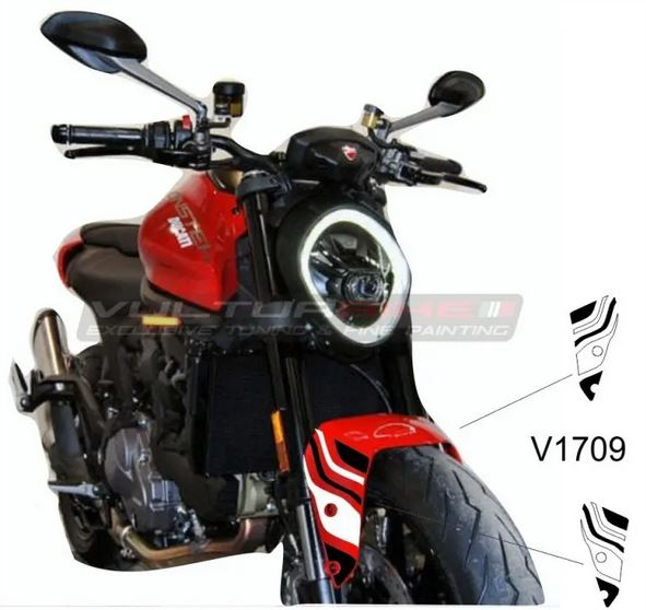 Personalise your motorbike with Striped stickers for front fender - Ducati Monster 937 stickers. Vulturbike decorative stickers are cut from UV-stabilised tinted vinyl.