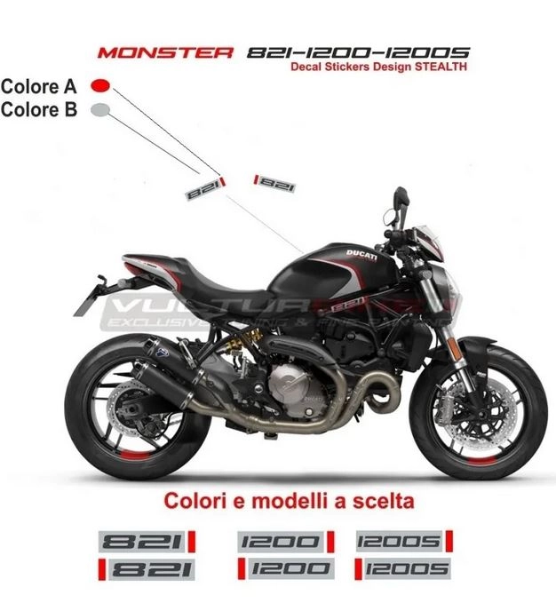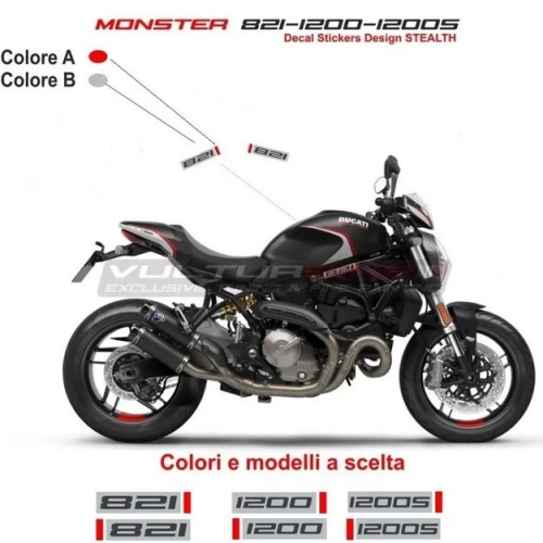 Personalise your motorbike with Customizable frame stickers - Ducati Monster 821 / 1200 / 1200S stickers. Vulturbike decorative stickers are cut from UV-stabilised tinted vinyl.
