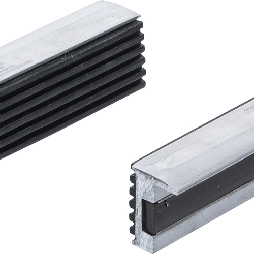 Protective jaw for vice - aluminium - width 125 mm - 2 pieces for gently clamping sensitive parts made of aluminium, copper, etc. The protective jaw adheres to the vice by means of the integrated magnetic bar. The protective jaw has a plastic coating.
