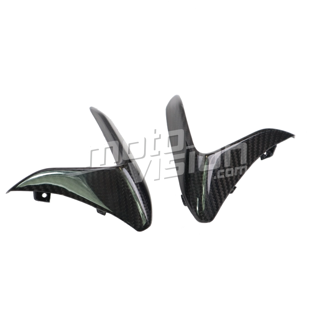 Pair of fork head deflectors APRILIA RSV4 2021- , delivered without screws or other fixings. The holes are already drilled on the carbon motorbike fairings. The parts are available in glossy or matt varnish.