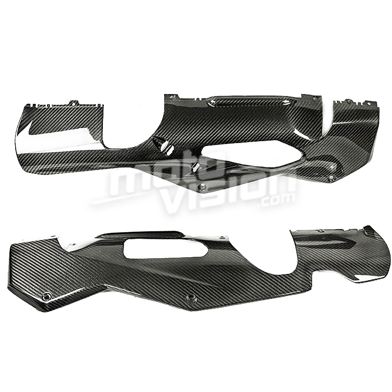 Carbon Side Low Fairing APRILIA RSV4 2021- , delivered without screws or other fixings. The holes are already drilled on the carbon motorbike fairings. The parts are available in glossy or matt varnish.