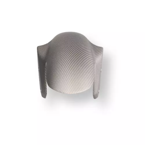 Easily recognisable by its very fine, tight weave, which makes it highly resistant to impact. The film is then placed in a mould with thermosetting polymer resin. As it dries, the carbon takes on its final shape, producing an aesthetic effect that is highly appreciated for its oblique lines.