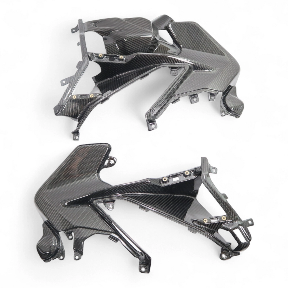 Inside panels carbon Ducati Streetfighter V2 2022- , delivered without screws or other fixings. The holes are already drilled on the carbon motorbike fairings. The parts are available in glossy or matt varnish.