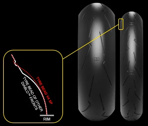 This tyre is developed to provide maximum performance both on the road and on the track, with specific tyre pressures (recommended 2.3 bar at the front and 2.1 bar at the rear when the tyres are hot).